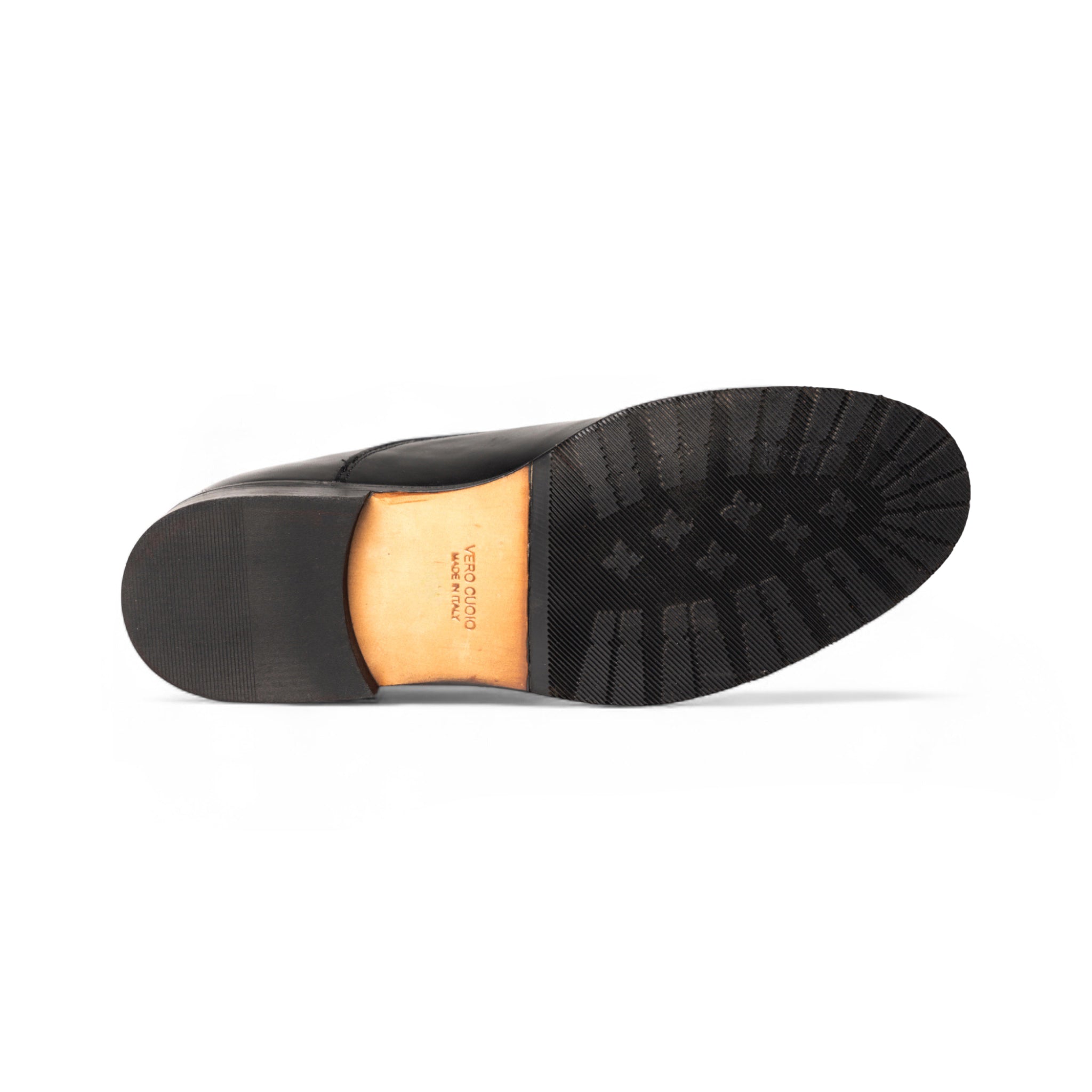 Derby TIBERIO Vitello Nero con Suola in Cuoio con Mezza Piantina Uomo