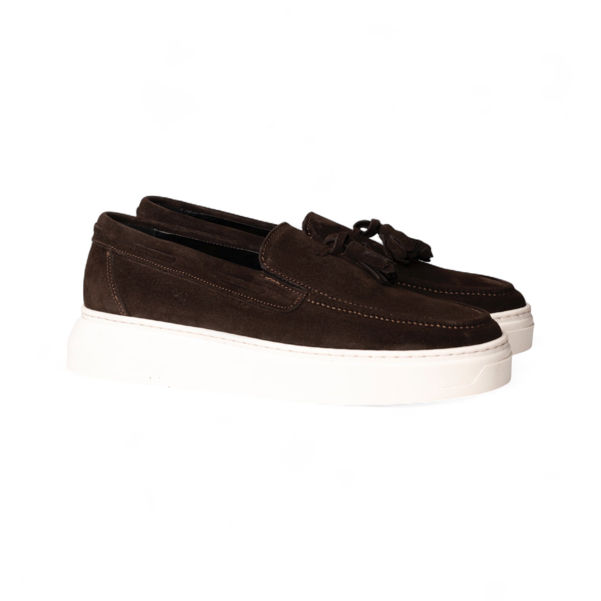 Mocassino realizzato in morbido camoscio testa di moro con suola ar bianca, pensato per offrire comfort e leggerezza senza rinunciare allo stile. La pelle scamosciata esalta la profondità della tonalità testa di moro, conferendo al modello un’eleganza naturale e versatile. La suola bianca dona un tocco moderno e garantisce una camminata fluida, rendendo questa calzatura ideale per completare outfit casual o smart con discreta raffinatezza.