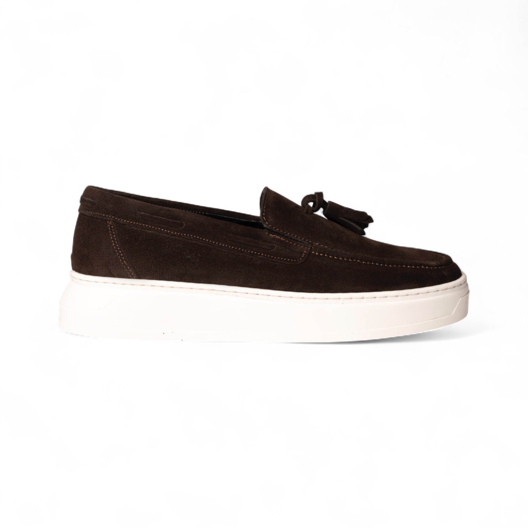 Mocassino OMERO Camoscio Testa di Moro con Suola AR Bianca Uomo