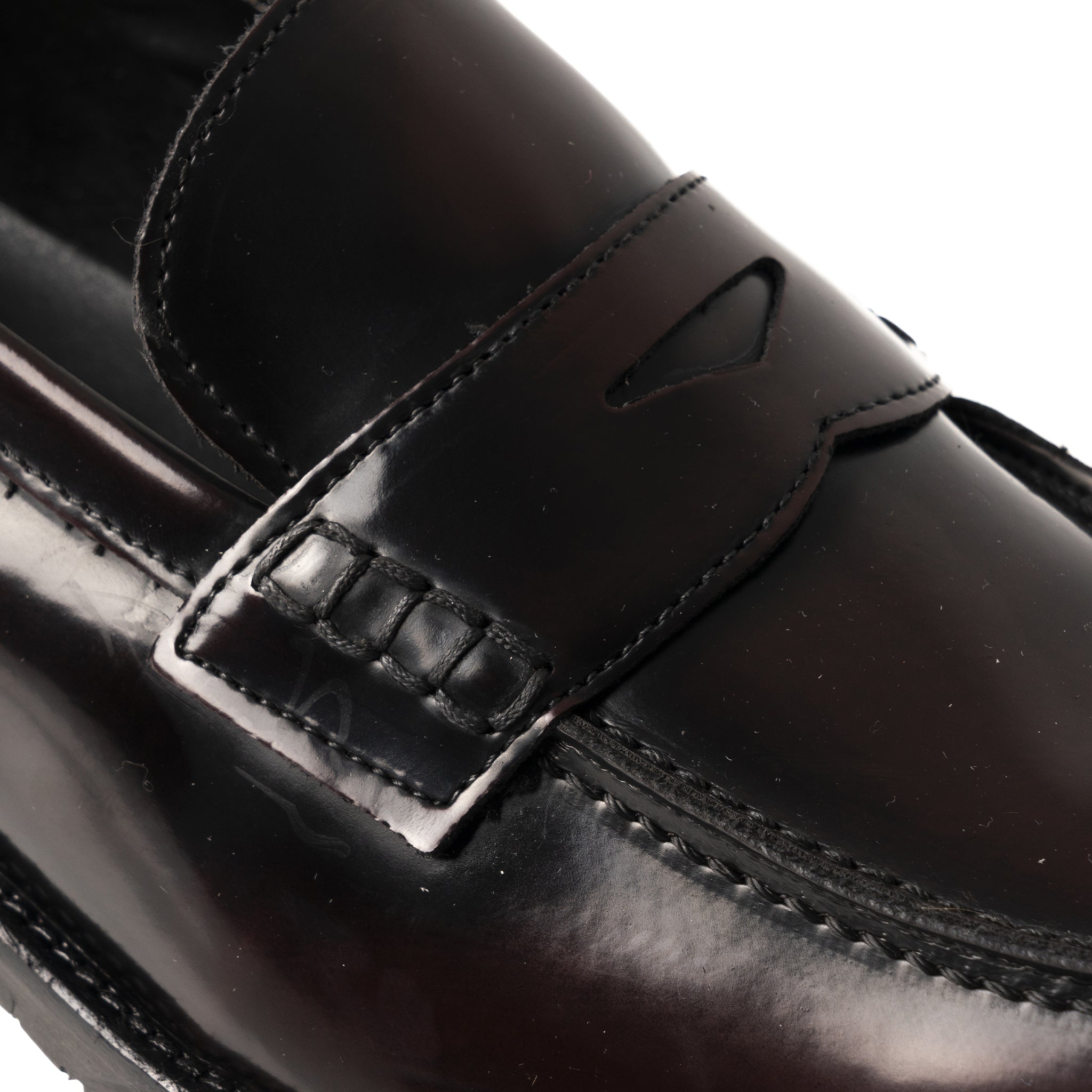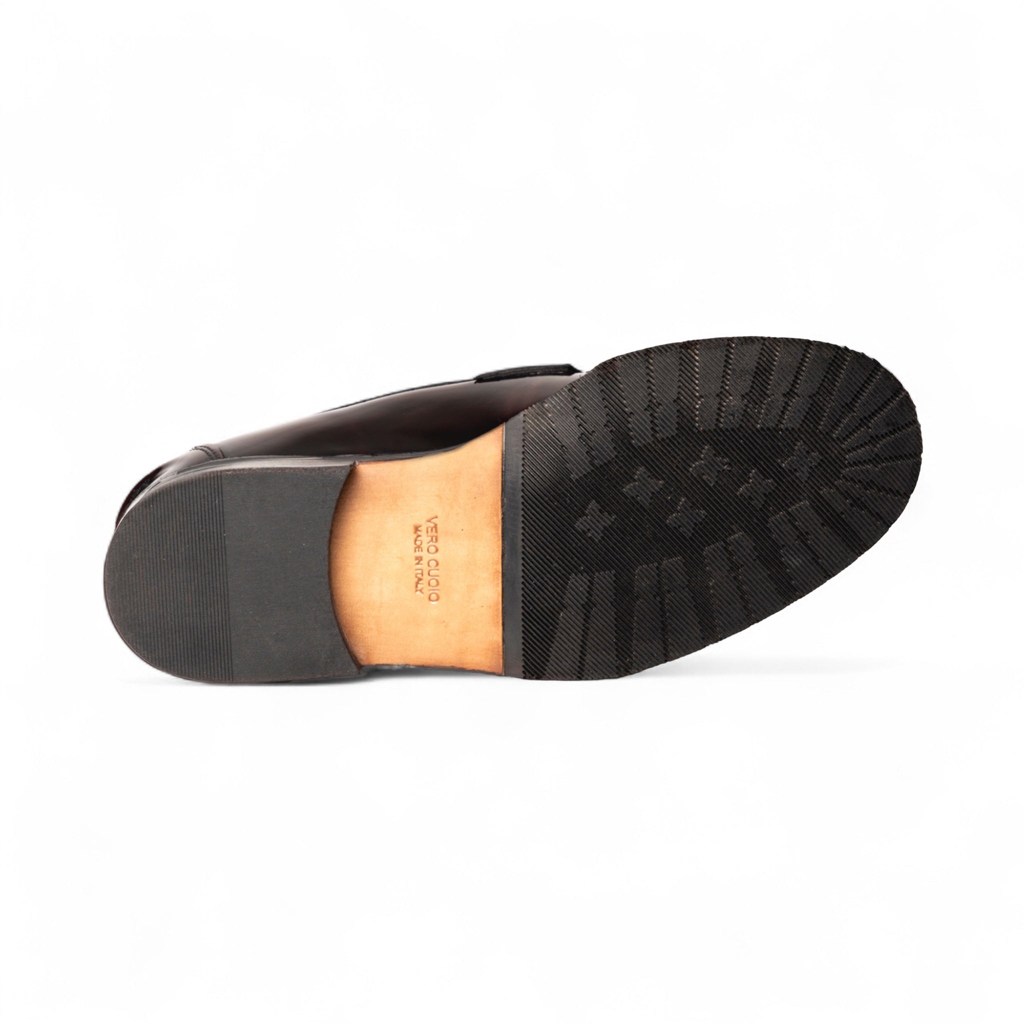 Mocassino AURELIO Abrasivato Bordeaux con Suola in Cuoio con Mezza Piantina Uomo