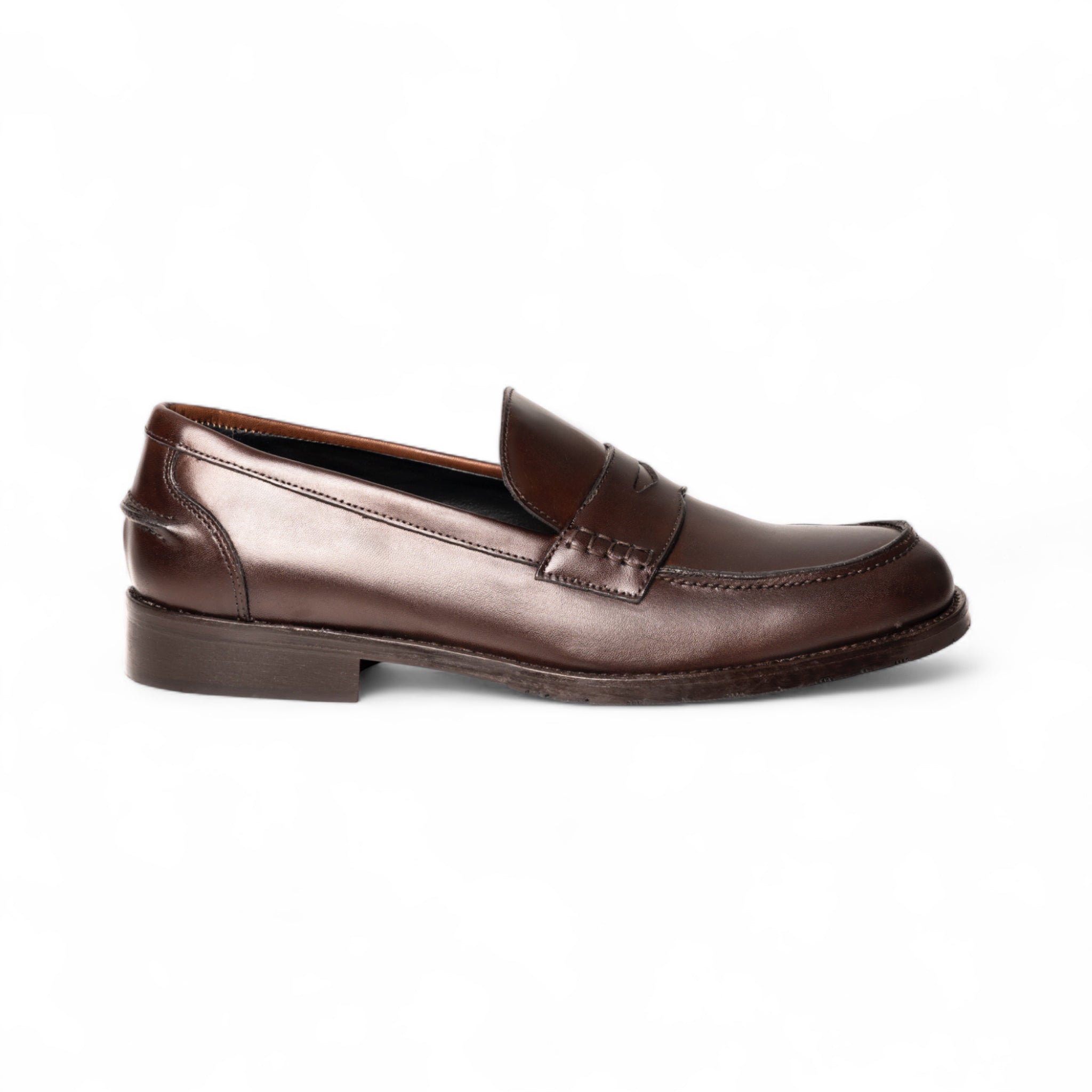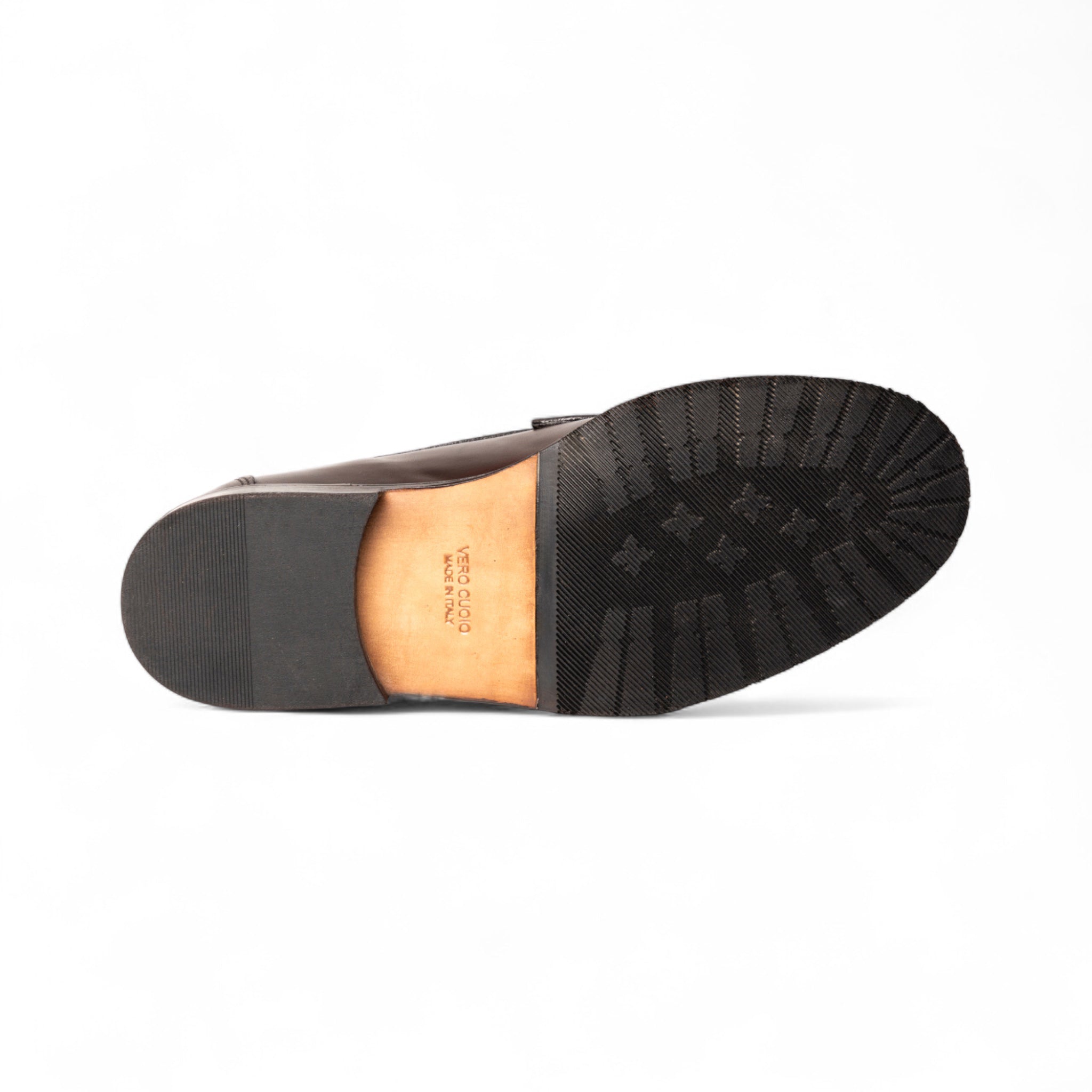 Mocassino AURELIO Vitello Testa di Moro con Suola in Cuoio con Mezza Piantina Uomo