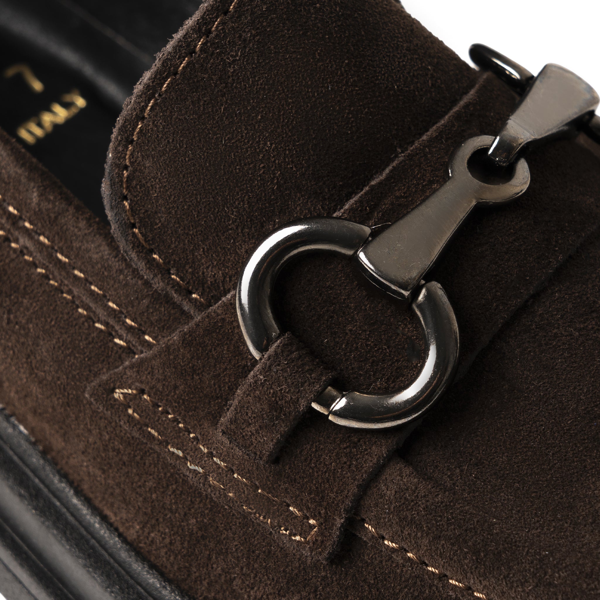 Vizia è un mocassino dallo stile elegante e contemporaneo, realizzato in morbido camoscio testa di moro che dona un aspetto raffinato e versatile. Il design è impreziosito dal morsetto metallico frontale, dettaglio iconico che aggiunge personalità senza rinunciare alla sobrietà.