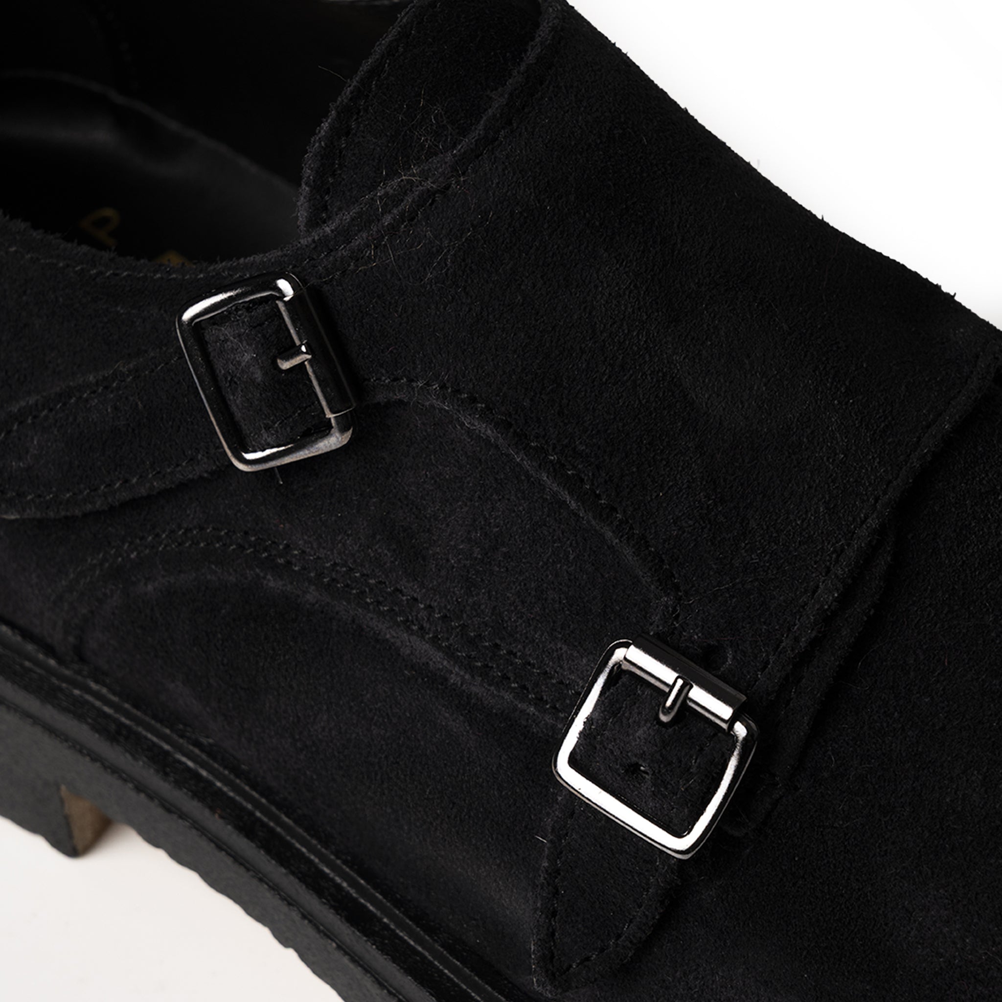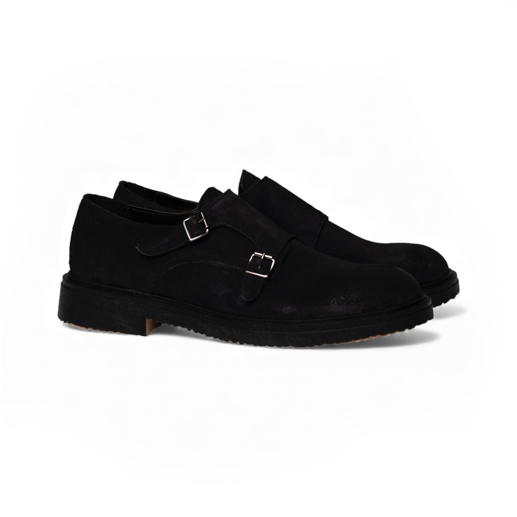 Monk realizzato in morbido suede blu con suola crep in tinta, caratterizzato da un design essenziale impreziosito dalla doppia fibbia laterale. La finitura scamosciata valorizza la profondità del colore, conferendo al modello un’eleganza discreta e contemporanea. La suola crep assicura comfort, flessibilità e una calzata naturale, rendendo questa calzatura ideale per completare look casual o smart con stile raffinato e senza tempo.