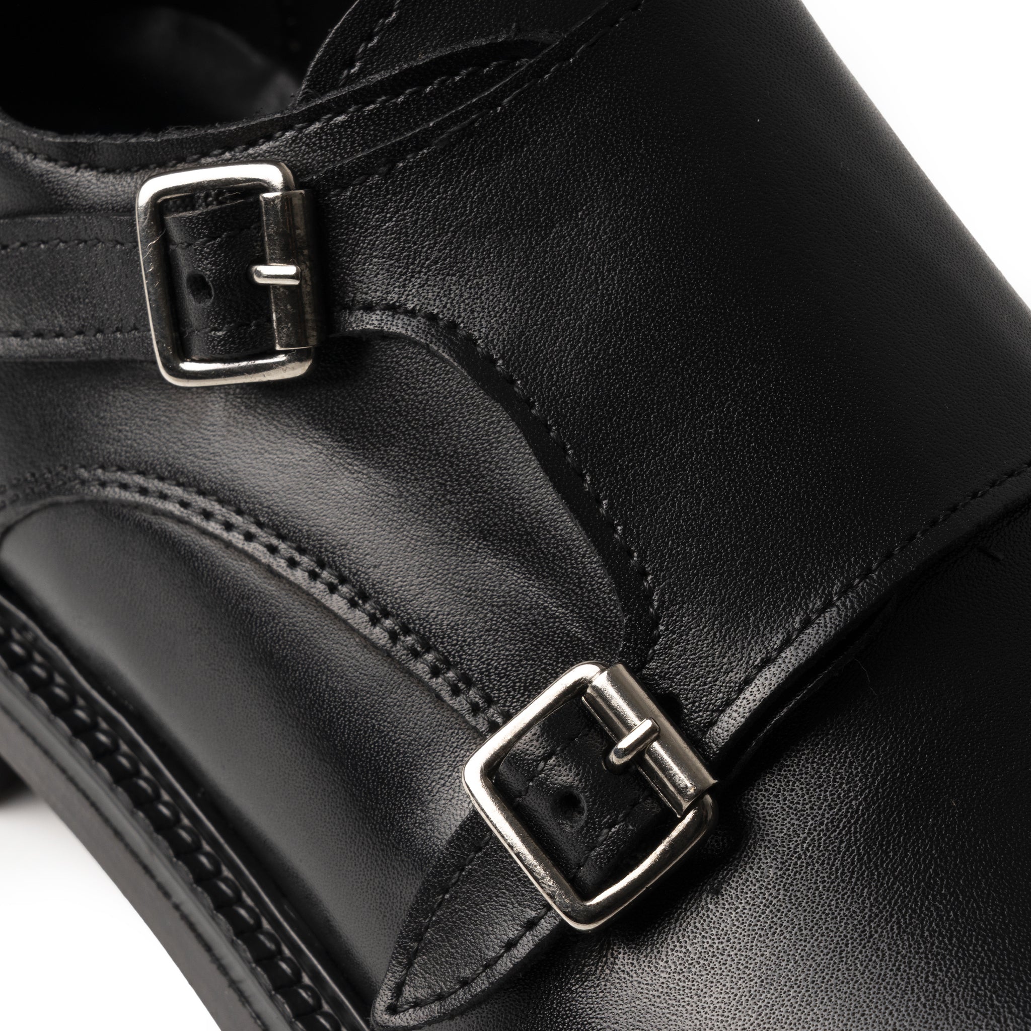 Monk Tullio in vitello nero con doppia fibbia, simbolo di eleganza e personalità. La suola light color nero garantisce leggerezza e comfort, bilanciando perfettamente lo stile classico con un tocco contemporaneo. Ideale per un look raffinato ma versatile, adatto sia al business che al tempo libero.