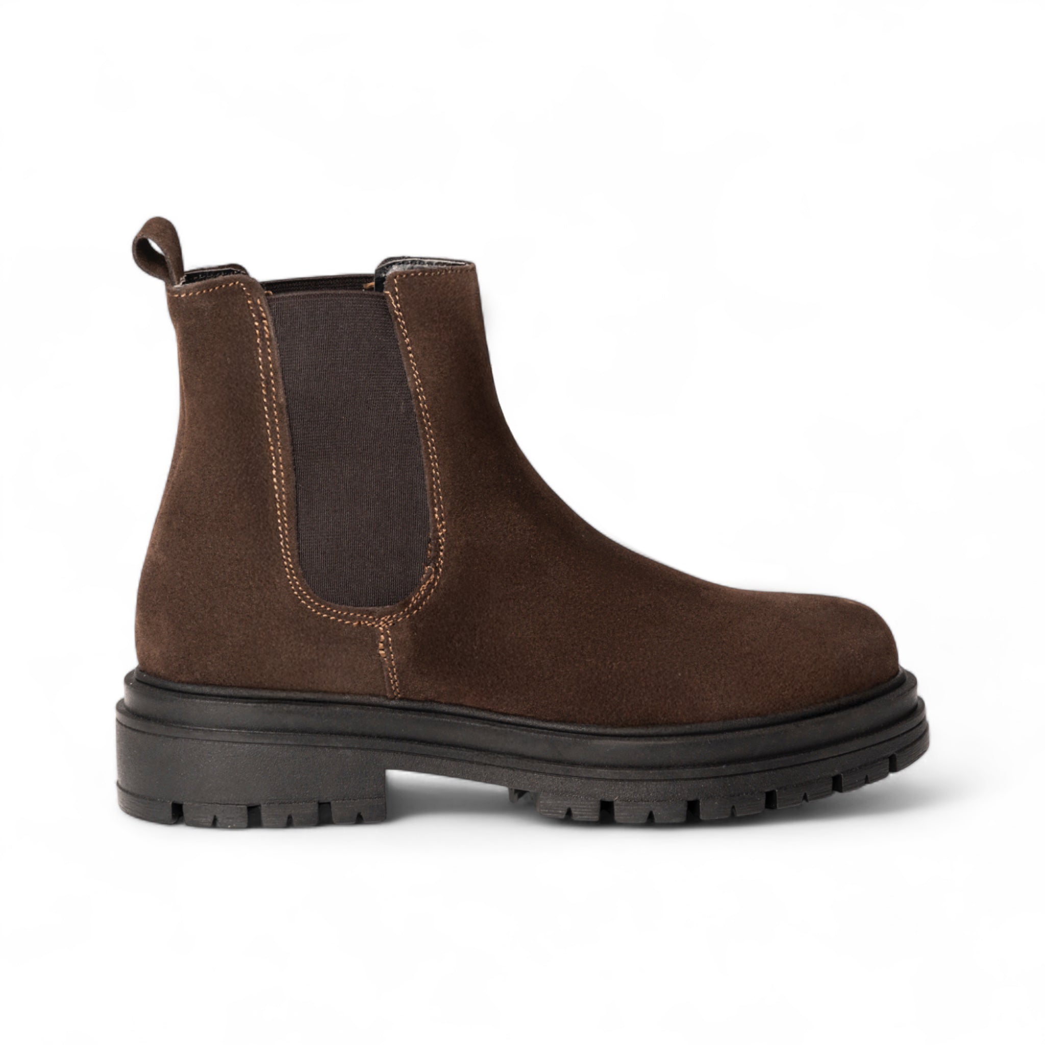 Sevilla è uno stivaletto dal carattere deciso, realizzato in morbido camoscio testa di moro che dona uno stile contemporaneo e versatile. L’elastico laterale ne facilita la calzata e garantisce una perfetta aderenza al piede, mentre la suola roccia assicura stabilità, resistenza e comfort anche nell’uso quotidiano.