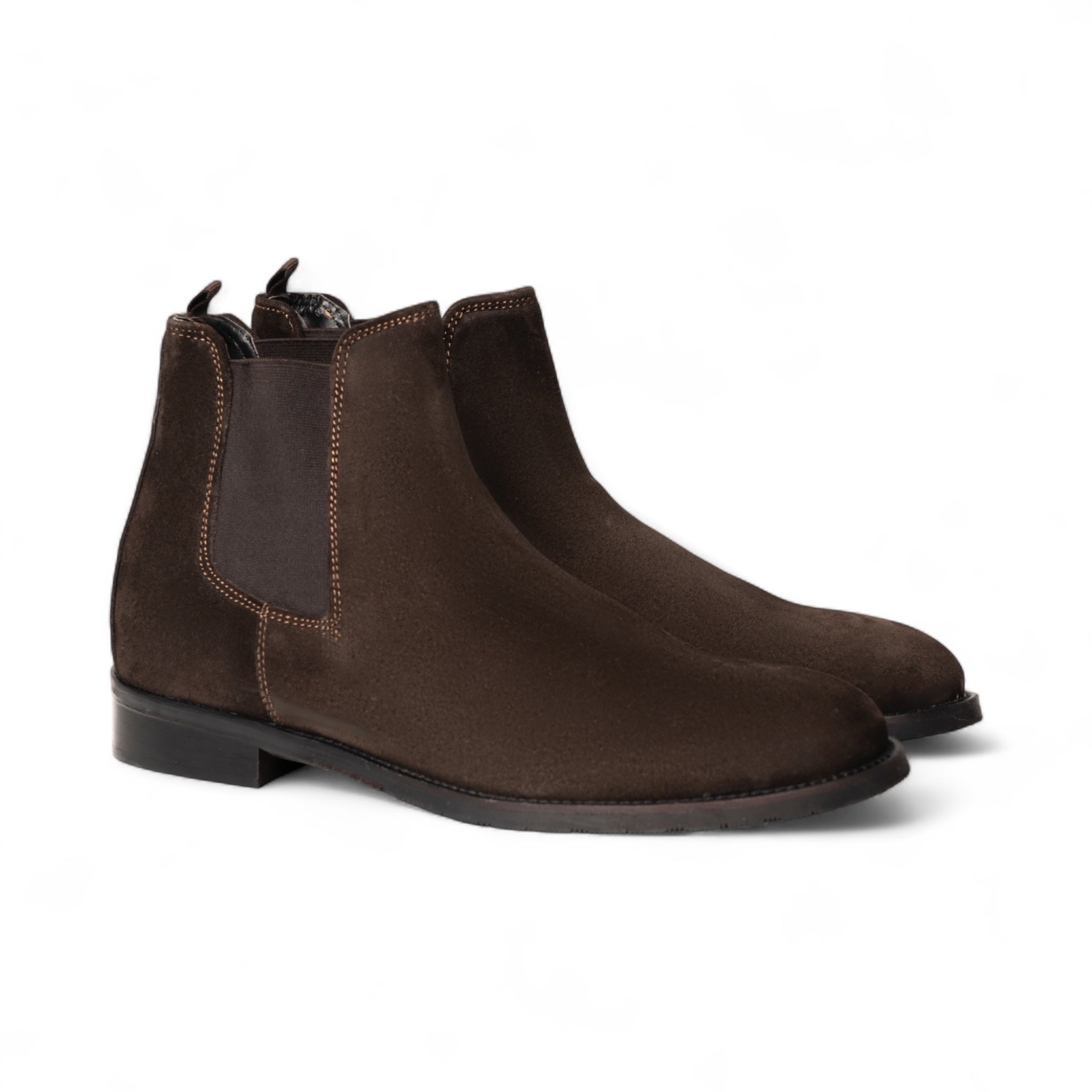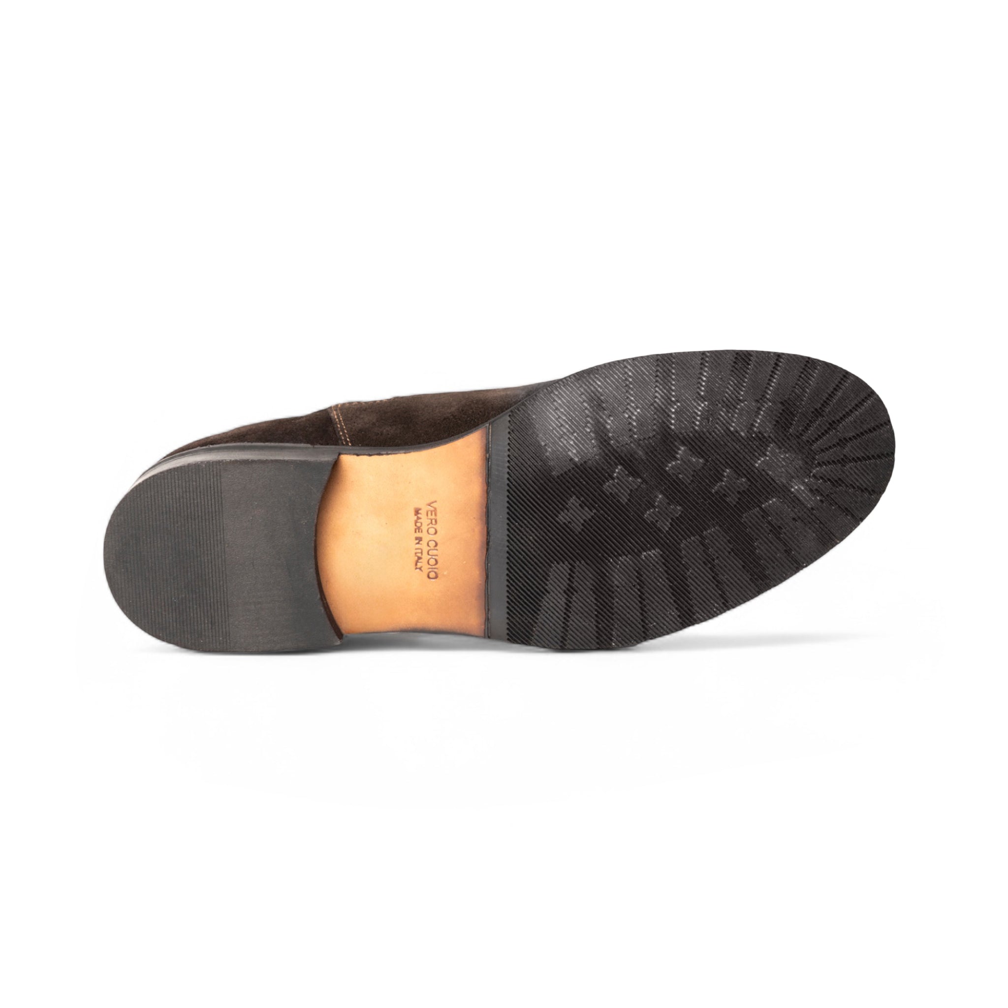 Stivaletto VITALIANO Camoscio Testa di Moro con Suola in Cuoio con Mezza Piantina Uomo