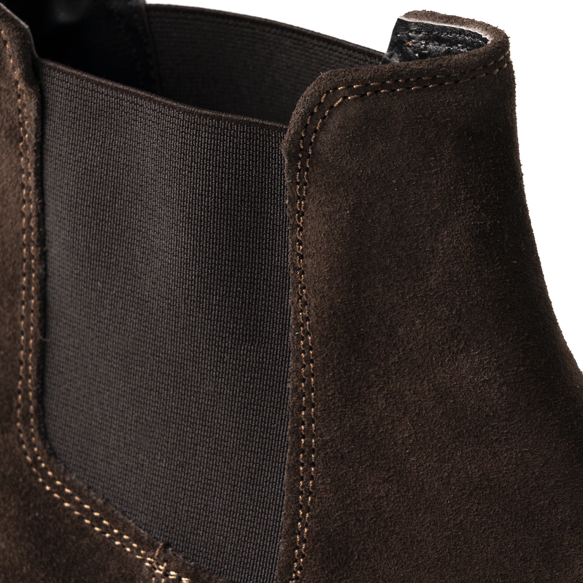 Stivaletto realizzato in morbido camoscio testa di moro con suola in cuoio e mezza piantina in gomma, pensato per unire eleganza classica e comfort quotidiano. La texture vellutata del camoscio esalta le linee essenziali del modello, mentre la suola in cuoio con inserto in gomma garantisce stabilità e praticità. Un design raffinato e senza tempo, ideale per completare look formali e casual con naturale sofisticazione.